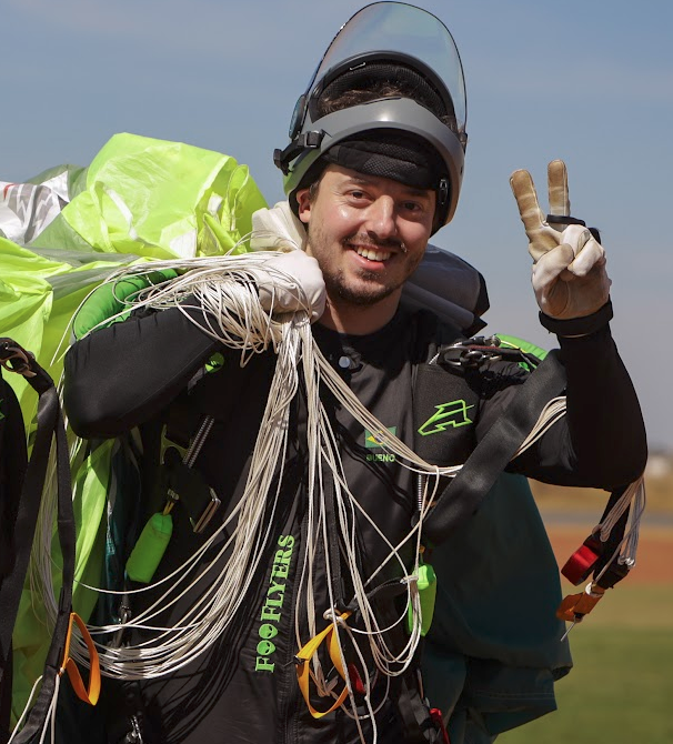Bueno started skydiving in 2013 and is currently the Outside-Center of the